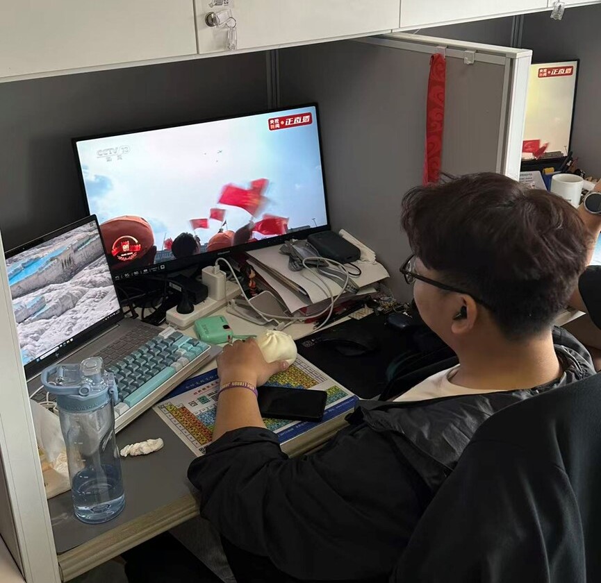 9月3日上午,系统室的学生党员们怀着崇敬的心情,各自通过网络直播平台,同步观看在北京隆重举行的纪念中国人民抗日战争暨世界反法西斯战争胜利80周年阅兵仪式。