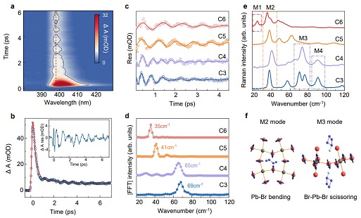 图2 | 环状有机配体钙钛矿中的相干声子动力学