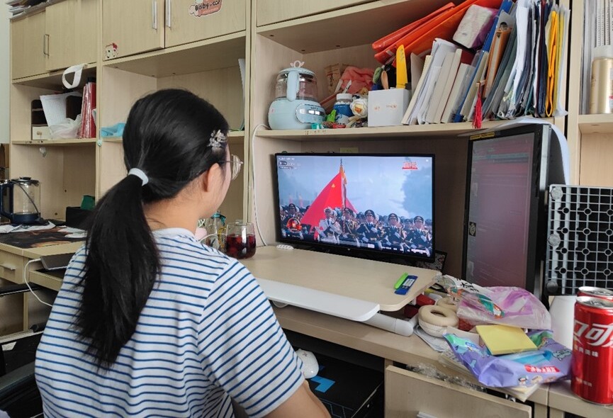 9月3日上午,系统室的学生党员们怀着崇敬的心情,各自通过网络直播平台,同步观看在北京隆重举行的纪念中国人民抗日战争暨世界反法西斯战争胜利80周年阅兵仪式。