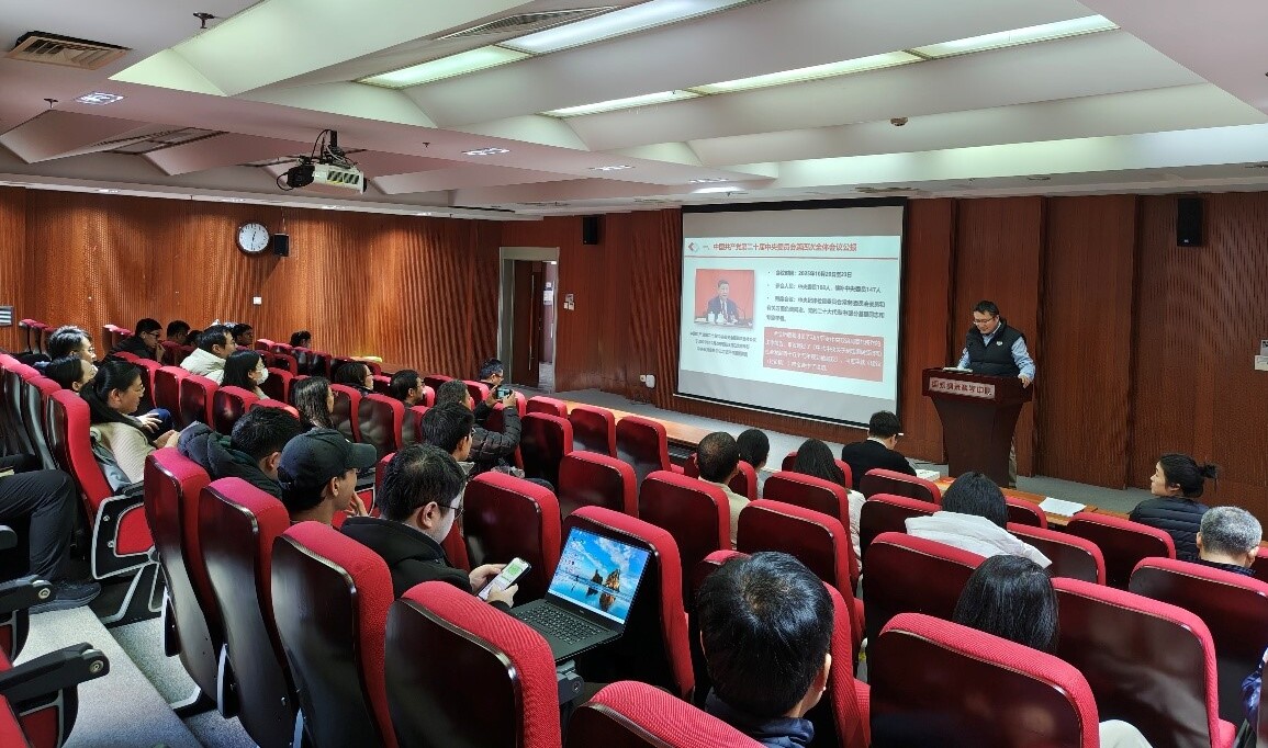 12月11日,纳米系统与多级次制造实验室职工党支部(以下简称“系统室职工党支部”)召开党员大会,深入学习党的二十届四中全会精神。会议由党支部书记段鹏飞研究员主持,系统室职工党支部40余名党员参会。