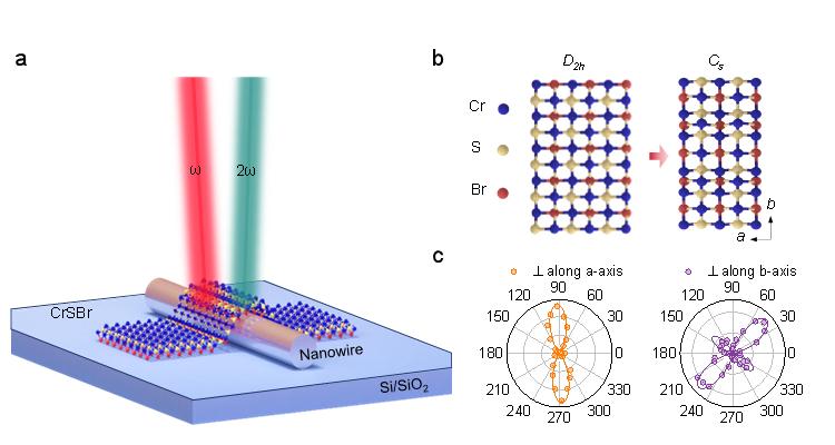 图1 二维磁性材料CrSBr与银纳米线集成诱导晶格重构产生二次谐波响应。