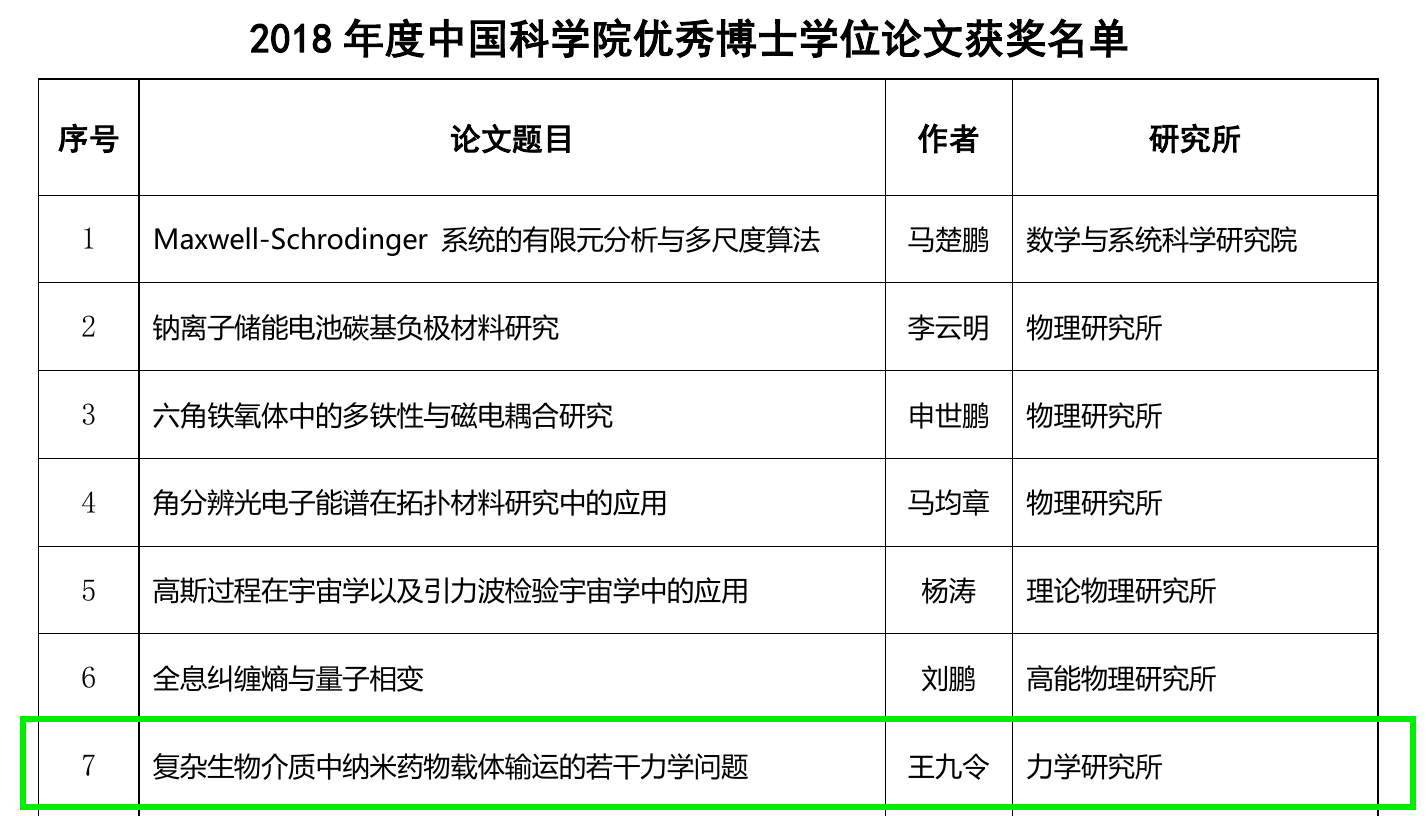2018年6月,王九令博士论文入选2018年度中国科学院优秀博士学...